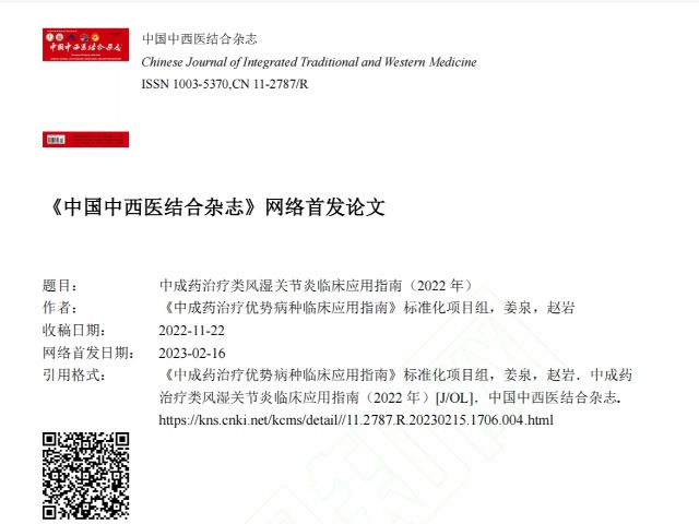 ȨÍþÐû²¼£¡¡¶ÖгÉÒ©ÖÎÁÆÀà·çʪÊàŦÑ×ÁÙ´²Ó¦ÓÃÖ¸ÄÏ£¨2022 Ä꣩¡·ÕýʽÐû²¼£¬Ð±¦gg´´ÔìÆæ¼£ÆßƬΪÖÎÁÆRAµÄÍÆ¼öÒ©ÎïÈÕÆÚ£º2023-03-20
